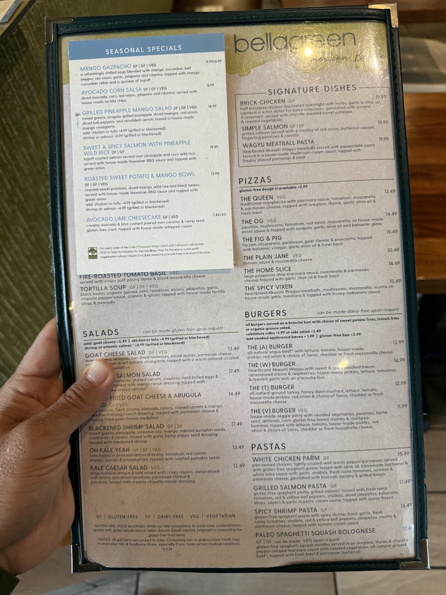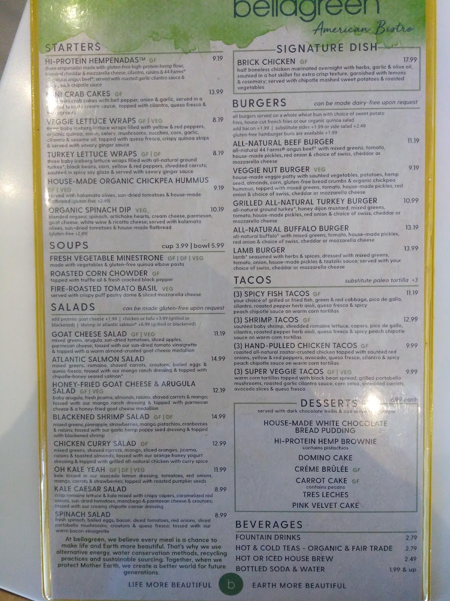 Welcome to bellagreen, a delightful New American restaurant nestled in the heart of The Woodlands, TX. Located at 2501 Research Forest Dr, this vibrant eatery is a haven for those seeking a conscientious dining experience that harmonizes health and flavor.